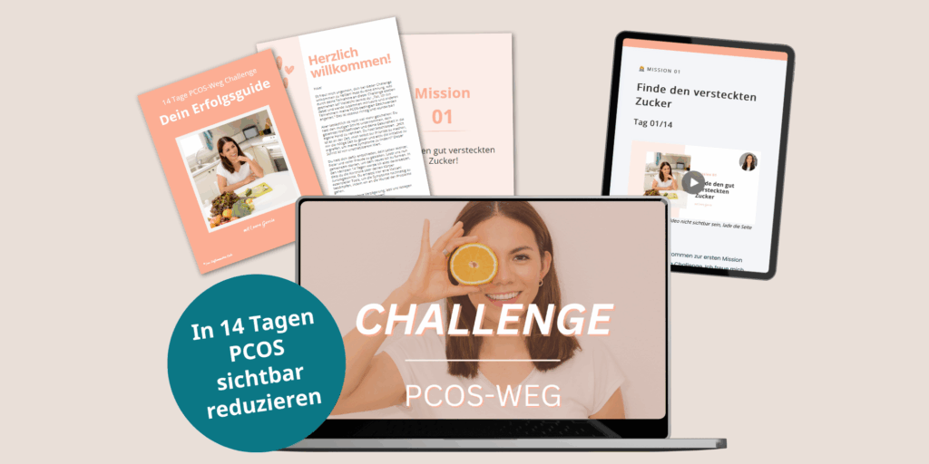 📣Übrigens: In meiner 14-Tage-PCOS-Weg Challenge gibt es eine eigene Mission rund ums „Richtig snacken“. Dort zeige ich dir, wie du mit einfachen Rezepten und blutzuckerschonenden Kombinationen im Alltag satt wirst, ohne deine Hormone aus dem Gleichgewicht zu bringen.