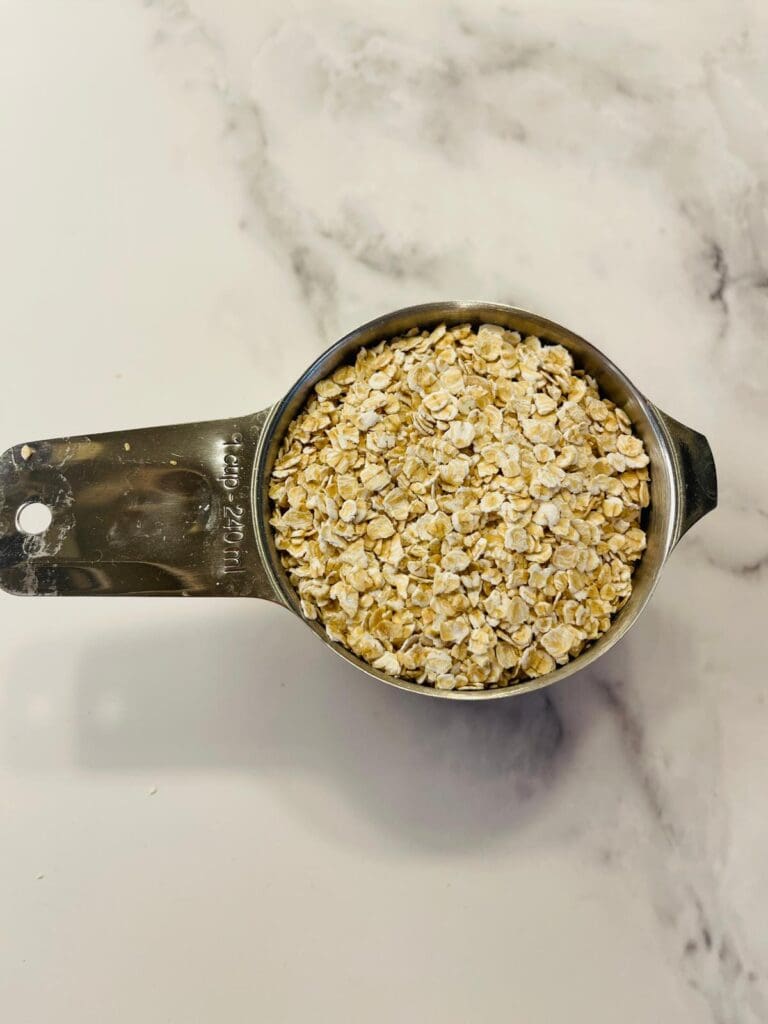 1. Haferflocken aus dem Schrank holen: 1 Tasse normale oder glutenfreie Haferflocken, je nach Bedarf.