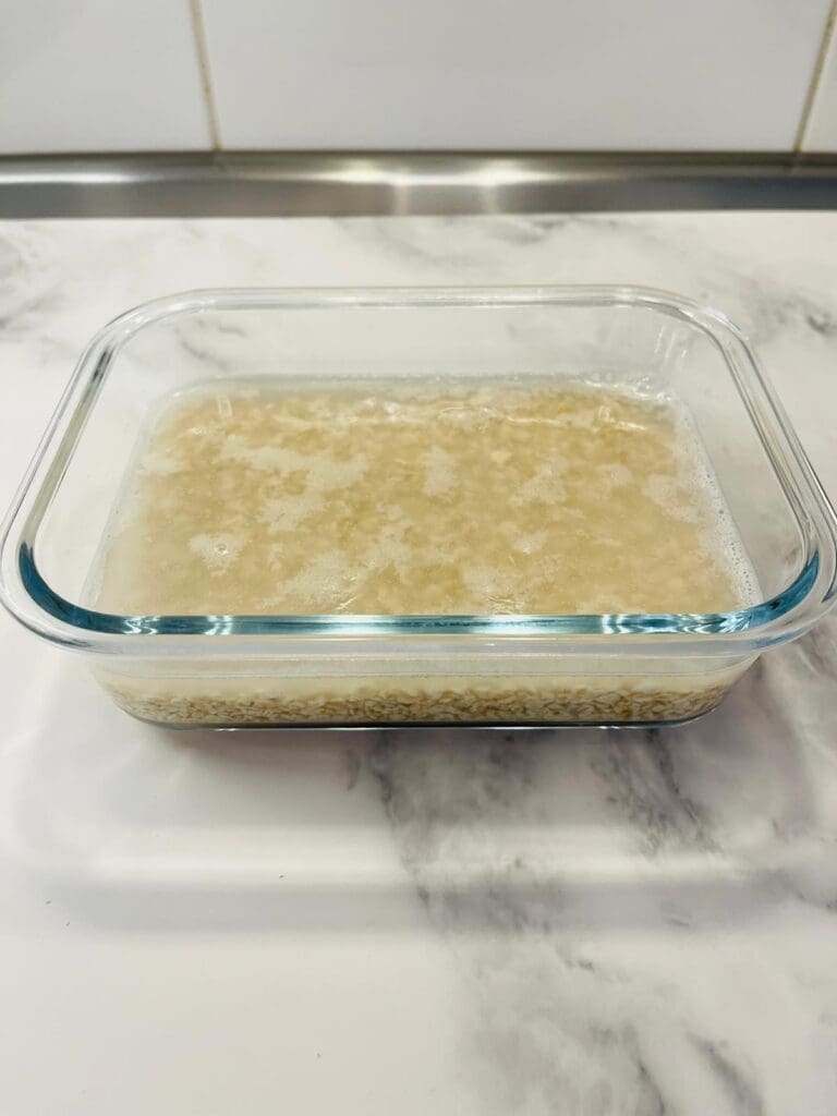 4. Stehen lassen: Haferflocken über Nacht (mind. 7 Stunden) bei Raumtemperatur einweichen.