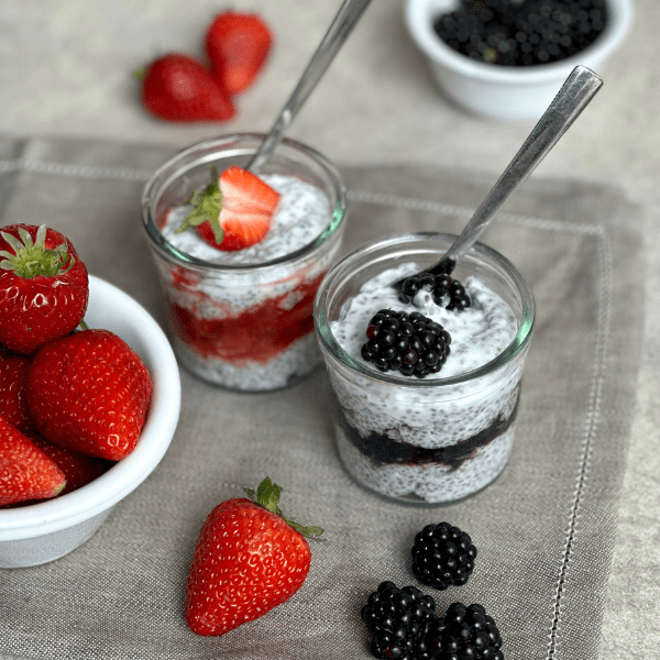 2 Portionen Pudding mit Beerenparfait als Dessert = 376 kcals (Statt Chips lieber doppelt Nachtisch und dabei Kalorien einsparen… Deal, oder? 😉)